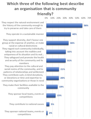 The study, conducted by Horizon Research for BACS (the Business and Community Shares trust which aims to connect companies and community groups for powerful results for communities), also measured what factors are most likely to improve a company’s perception of being community friendly.