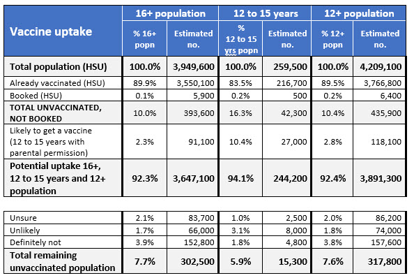 A third (33%) would be definitely or more likely to get vaccinated to end the Level 3 Lockdown in Auckland and to shift to Alert Level 2 in the South Island.