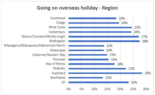 Northlanders look least likely to travel (13%), compared with 29% for those in the Auckland region, 28% in Wellington and 24% in Canterbury.