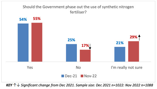 This is a significant increase from 48% in a similar poll only a year ago, in December 2021. It also shows that a majority (55%) support phasing out synthetic nitrogen fertiliser.