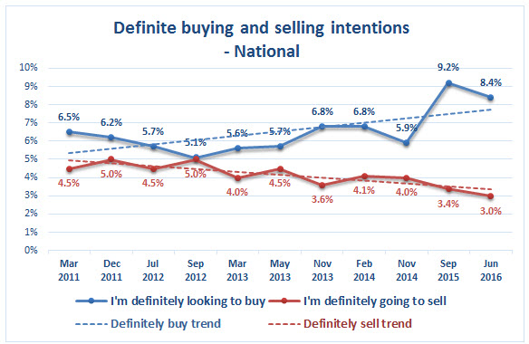 The demand estimate for the next 12 months is 131,900 dwellings - down from 144,500 when last surveyed in September 2015.  This is equivalent to a national nett shortage – the gap between numbers of definite buyers and numbers of definite sellers - of around 84,800 dwellings to meet demand from those definitely intending to buy – down from the 91,100 reported in September 2015.