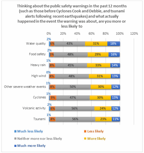 In the wake of public safety warnings issued for recent events like cyclones and tsunami, between 8 and 11% of New Zealand adults are less likely to believe them.