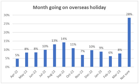 70% intend travelling between May and October. 28% aren’t yet sure when they will go.