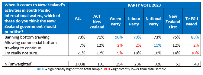 Overall, there is strong support to prioritise the ban on bottom trawling in South Pacific International waters: 73% (2,947,000 adults) say it should be banned.