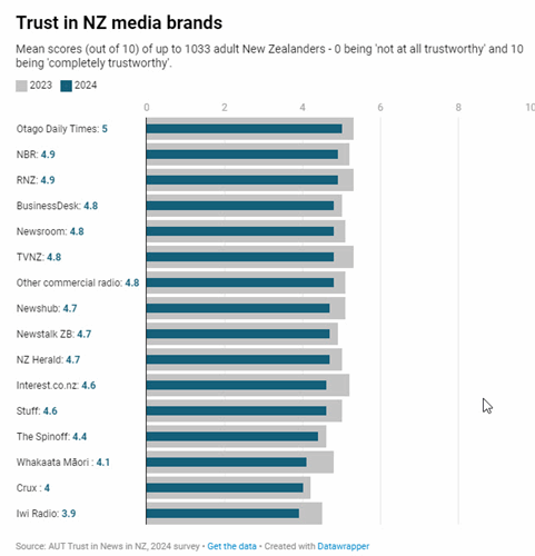 In 2024, all the major New Zealand news brands suffered declines in trust.