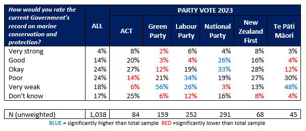 42% also rate its management of marine conservation poor or very weak, while 18% say it is good or very strong.
